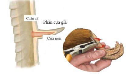 • Riêng với gà già khi soi lên ánh sáng cũng khó phân biệt được phần có mạch máu và phần sừng. Bởi cựa gà lúc này đã là bị vôi hóa thành một khối sừng từ gốc đến ngọn. Nên muốn cắt an toàn hãy cắt từng chút một. Lần cắt đầu tiên chỉ cắt dưới 1cm, mỗi lần cắt lại nhích thêm 1-2mm, cho đến khi chạm vào phần cựa non thì dừng lại.