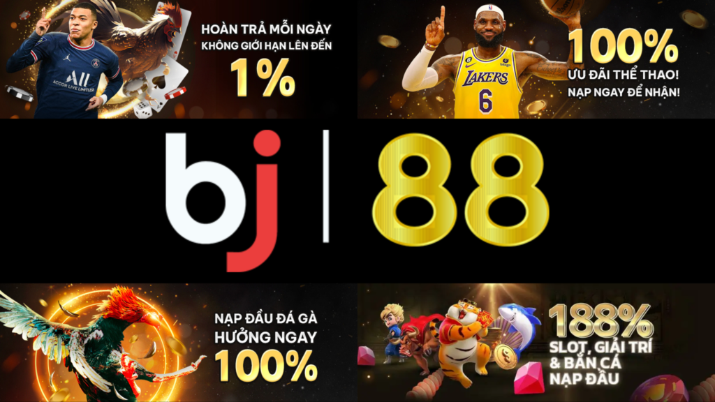 BJ88 cam kết sẽ mang đến cho người chơi những trải nghiệm cá cược tốt nhất. Sàn cá cược trực tuyến này cung cấp hàng loạt các trò chơi hot nhất và hấp dẫn nhất hiện nay như thể thao, casino trực tuyến, máy đánh bạc, đá gà, xổ số, bắn cá…